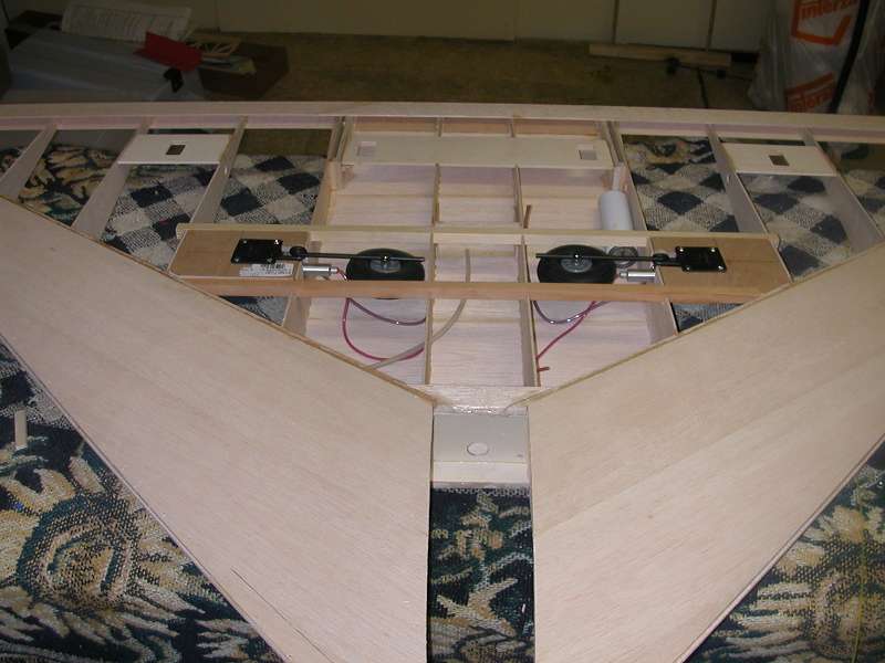 A part of the credit also goes to a guy called Neil, who instaled a mechanical retract on a DV in 2001 . My instalation is sligthly diferent ( pneumatic system, no top spars, bottom spruce spars instead of balsa, diferent nose unit setup, less aera sheeted), but the main ideas are coming from the work of this guy
