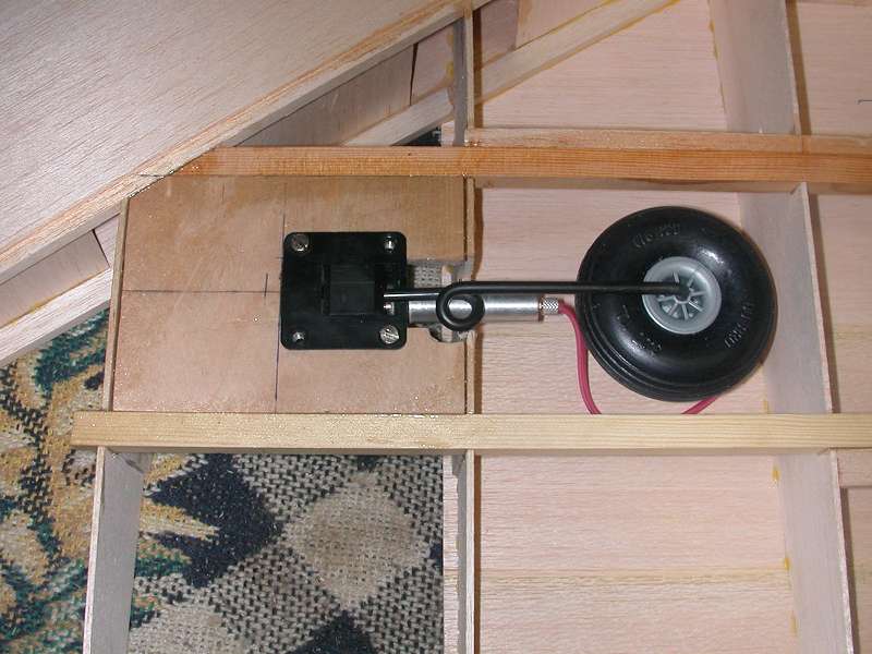be sure that when you make your gear mounting plates, the cuts for the unit are made so that your legs are the same lenght than the fixed gear version and that the weel is aproximatly 1/4 from w1 (with gear retract). if done like that, your legs will be the same lenght than the stock ones and the distance between the two weels (gear extend) is aproximatly the same than the fixed gear version.