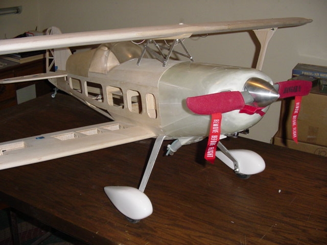 If doing over again I'd strengthen the stringers along the bottom of the fuse - replace with spruce? And I'd go again with Stan's Fiberglass cowl and wheel pants. I made a 'door' in the side of the fuse for the fuel dot - by boxing in one of those punched out sections of lite ply (near the front of the plane).