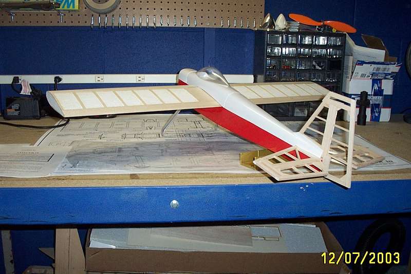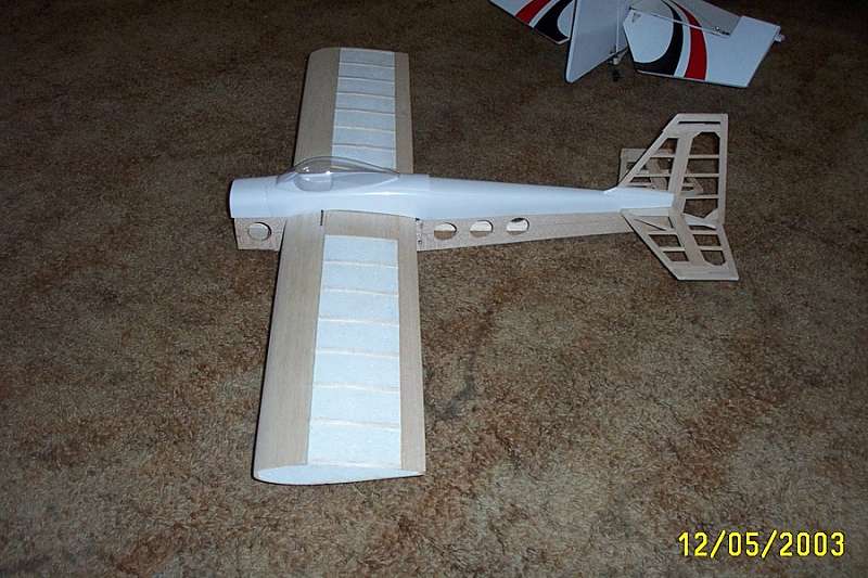 I bought that little bird about 7 years ago thinking it was perfect for my .10 but it came out too heavy and flew extremely sluggish. After a couple months not enjoying it that much I did exactly what you have in mind. I sold the old airplane and ordered me a new kit. I removed practically all the foam of the wings. Using a hotwire cutter I left 1/2" ribs and a 3/4" center spar section of the original foam. Then I sheeted the whole wing. Got rid off practically all the plywood except the firewall and did some modifications to the landing gear mounting block.