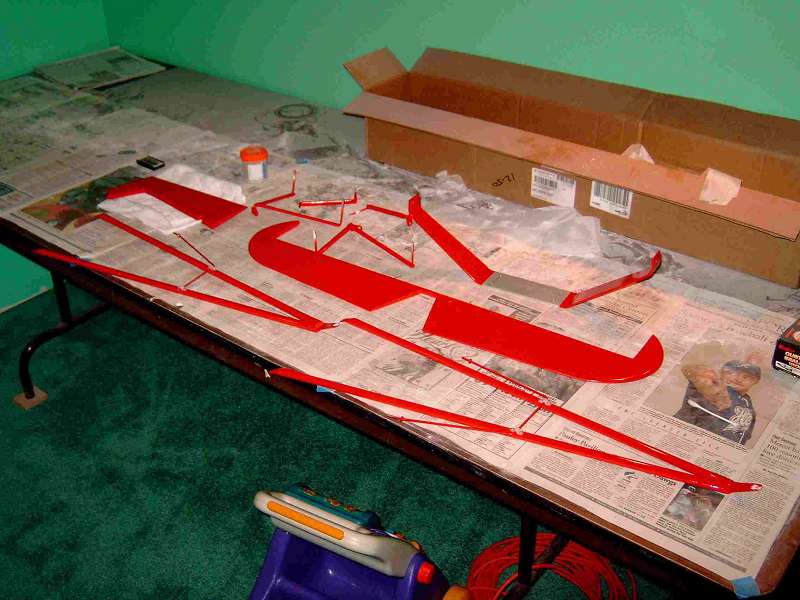 I am going to wait til' this weekend, finish painting the ailerons, then steel wool the whole wing to scuff it and prep for clear coat next week. I will also be making a make-shift painting tent for the clear coating, will post pics of that too.