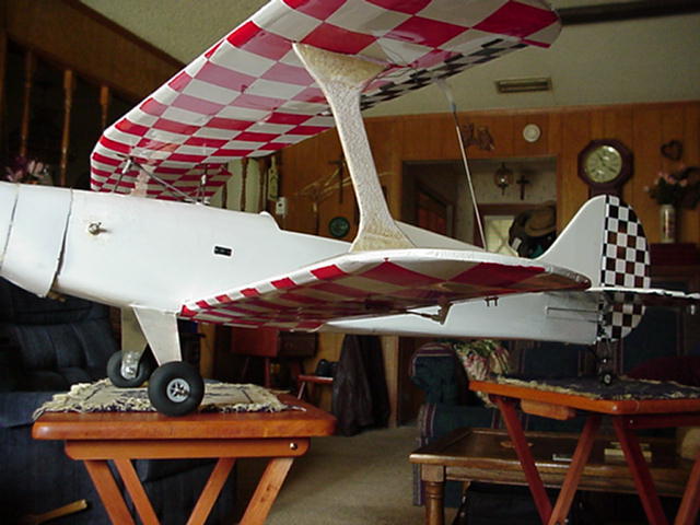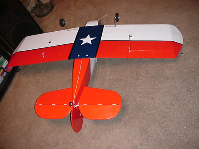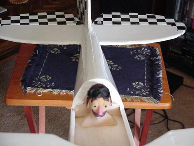 Ok Bear you asked for it, I haven't really settled on a color scheme but the tail and under wings are pretty well set, the rudder is a pull pull system the rear wheel is a spring assembly, and Captain Eddie is at the controls. Please forgive the mistakes and picture problems, I am very new to this forum. I'm sure you will let me know if I am going beyond prodocol.