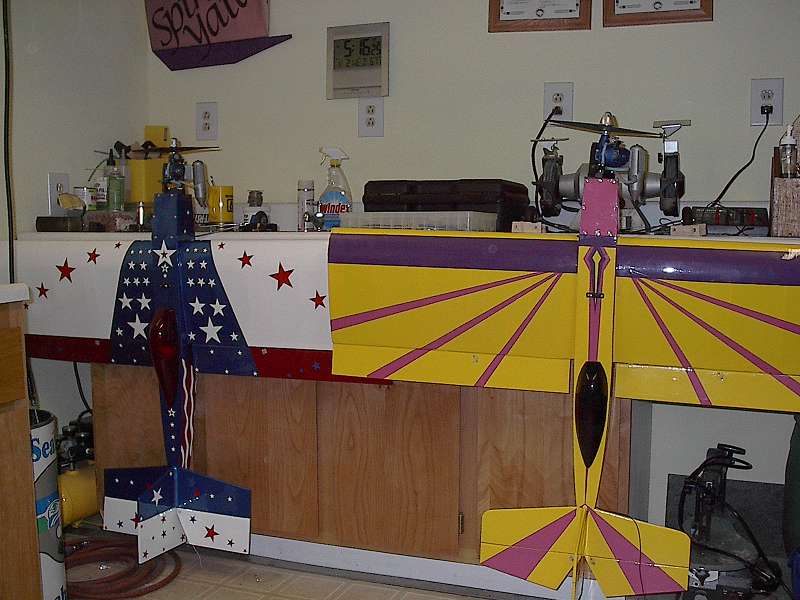 MY Up-Roar that I fly now, the blue, white stars, has one side wing of the bottom in white and the other in red. The big trick for me is keeping them close enough to me. I'm just as bad about it with giants too but with them they are now about A mile out and look like A 40. Mounting my engines at 45 degrees only makes the engine snot flow heavy on the bottom of the wing. I have used the ehaust deflectors in the past but one of the engines didn't run well with them and I can't remember which engine so I just wipe them down good at the end of the day