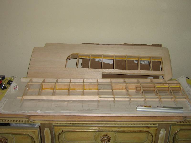 My SD arrived late Tuesday evening.....after making a couple of copies of the plans, (that way I keep the originals pristene), I got started Wednesday evening and so far have the vertical, rudder, horizontal and elevators framed up......I'll start on the first wing panel Saturday afternoon. So far, everything is going smoothly. I have a newer model GP engine mount that won't have the engine sitting so far out on the mount rails. I'm using a Saito 150 for power. I ordered the Fiberglass Specialties cowl and wheel pants. ( I really hate ABS). I am also using a CB Associates leaf spring tail wheel assembly...you can still get them from K&B.