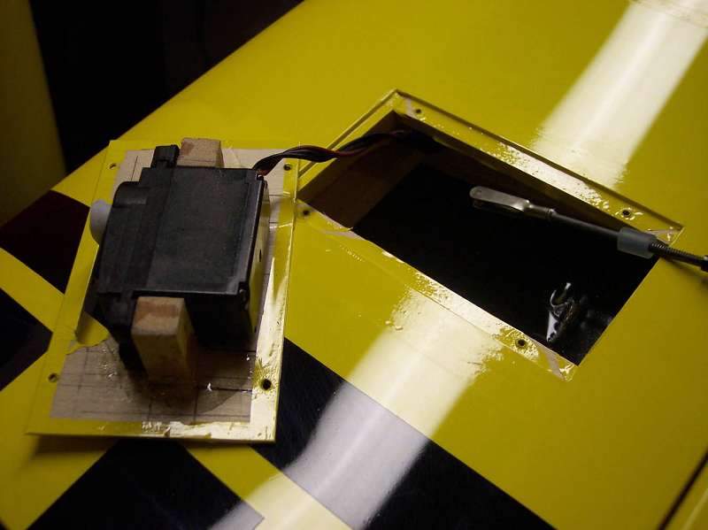 Description by Ken is right on the money. I had no problems and did exactly as he describes. I did add small triangular bracing to the 'posts' that the servos mount on. Was a bit worried about the security of the butt joint between the post and the hatch. That may have been overkill, but I'd hate to lose a servo due to vibration and force.