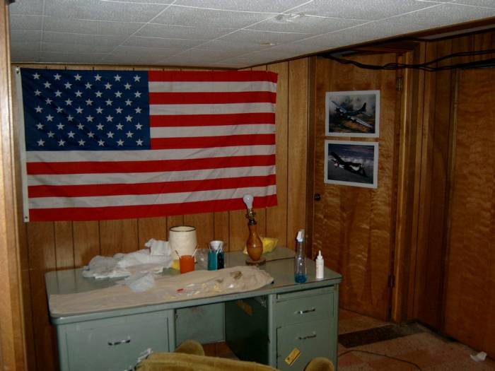 This is a photo of my workshop...I also enjoy woodworking, so I have a few "heavy duty" tools and things! It usually is a bit messier than this, but I had just straightened up for a cabinet project. I can's wait to get finished, so that I can get started on a F3F-2 Grumman " Flying Barrel."