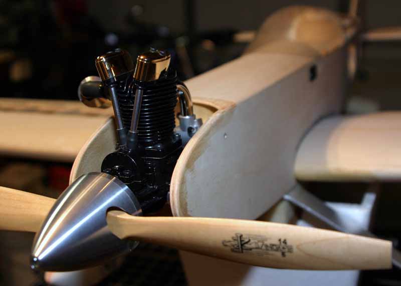 It'a a Saito 91 that's never been run. I bought it when I started this project, and now Saito's generous 3 yr warranty has already run out! Oh well; of all the hobby products out there, Saito probably concerns me the least. At least I know there are plenty of parts out there for this engine if I do have a problem.