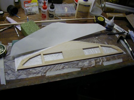 On the Contender side, I don't know what happened but I just couldn't seem to get the gussets cut right for the horizontal stabilizer!. I finally had to resort to cutting index cards to get the right angles. I really struggled and was not to proud of it but finally got the gussets cut to my liking.