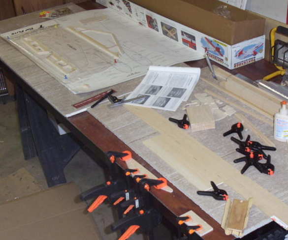 I am going to attempt to attach 2 pics of my first day of progress. I got the parts cut out for the Horziontal Stabilizer and elevators. Took 2 1/2 hours. It was fun.