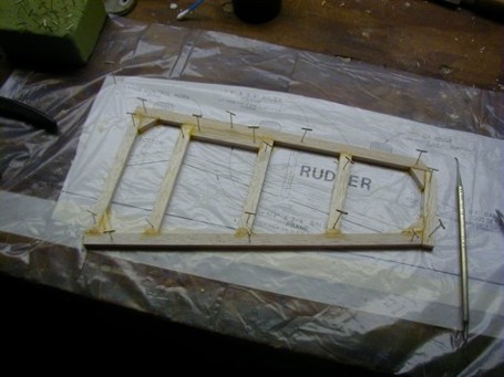 Mike: I built my rudder just like you did. I will post some pics. tomorrow. I have finished the elevators, horizontal stabilizer, rudder and rudder fin. I have the wing plans laid down and covered with Saran wrap. It works great, nothing stick to it.
