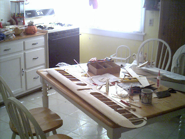 That's not a mess! No wood chips or saw-dust all over the floor. I don't see a dremel or a compressor plugged in over the microwave. If she can't handle you building in the kitchen, next time try the living room.
