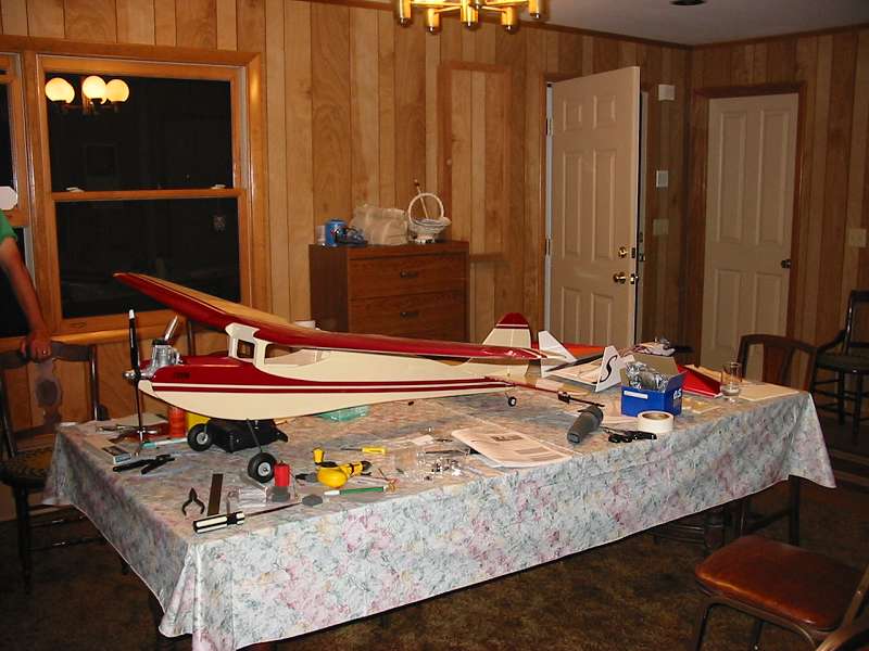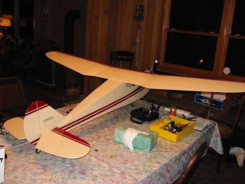Equipment: I used a O.S. .46FX engine. This engine definitely has enough power for the plane. You said you might go electric Dan, and I think you probably can, as the plane seems to be light for its size, as far as I know. I too am only using 3 servos.