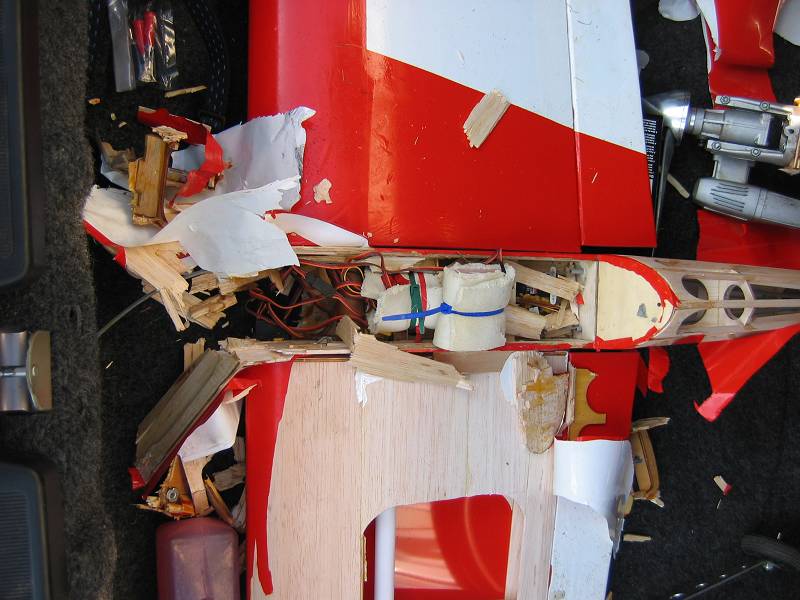 Over last summer in august i think??? i crashed my SE bad. The fuse was completely destroyed back to the little hole for the dowel that lines up the wings. All the stringers behind the cockpit were popped out of their spots, I found the cover to the radio compartment about 20 feet away from the plane when it crashed. I ended up fixing the fuse then putting it on the shelf for a while, it had minor damage to the wings and countless other little things that i just never got around to. I bought an RC truck, sry guys, but it was cool when the cops clocked it at 44 across a parking lot, they thought it was cool too