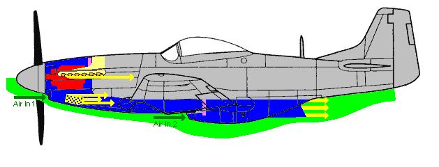 Blue is the path air will travel through the plane, yellow is air exitting the plane.