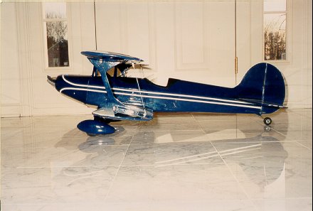Well the first(X) wife made me sell all of my aircraft back around 1990, but the Skybolt flew with authority on an OS 91 FS. IT was a very groovy plane that flew very well and it liked landing with just a touch of power on as most bipes do. 4 ailerons made the rolls fast, crisp and axial. What you don't see in the pic is the gold checkerboard on the bottom of the wings...it just looked beautiful in the air. I wish I still had it (along with all of my other stuff) Oh well I am rebuilding again!