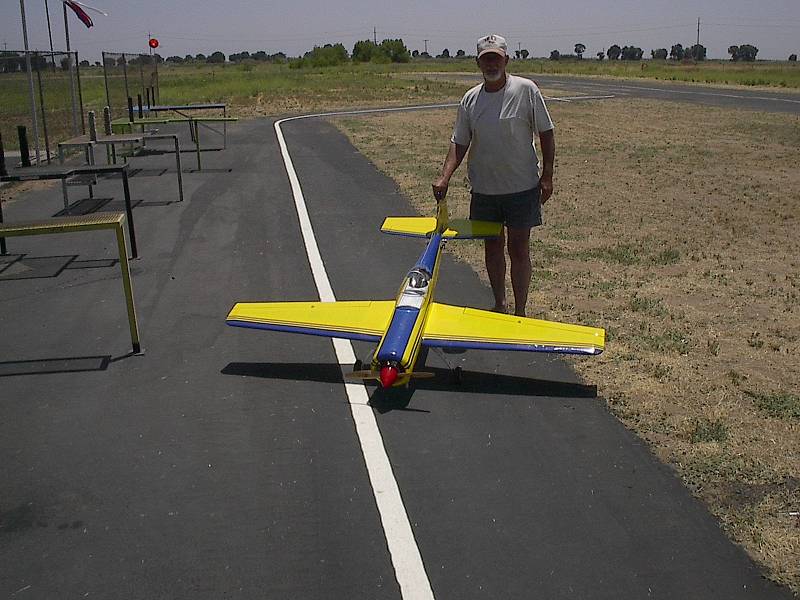 Thank you much!! The plans were from MAN and designed by Mark Sirianni. It was designed to come in at 10 pounds. My first thought was my YS 110 but due to the size I decided to just redraw everything and stuff A gas engine on it. Even the way I did things it was A light plane until I installed the engine and two batteries. I used the LG from A Wild Hare 27% Extra. It had enough ground clearence for the 20 inch prop if the pilot knew how to land smoother. After the first landing I changed over to an 18 incher and all is now well. I could go back to the 20 after A couple of tries, took no time at all to get used to this plane.