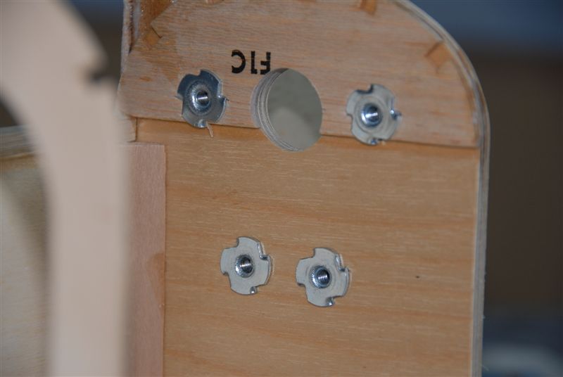 Done up the a bit more work on the firewall. I did not cut-out the soft balsa for the top two blind nuts. I compressed it far enough and later after applying epoxy, I think it should hold.