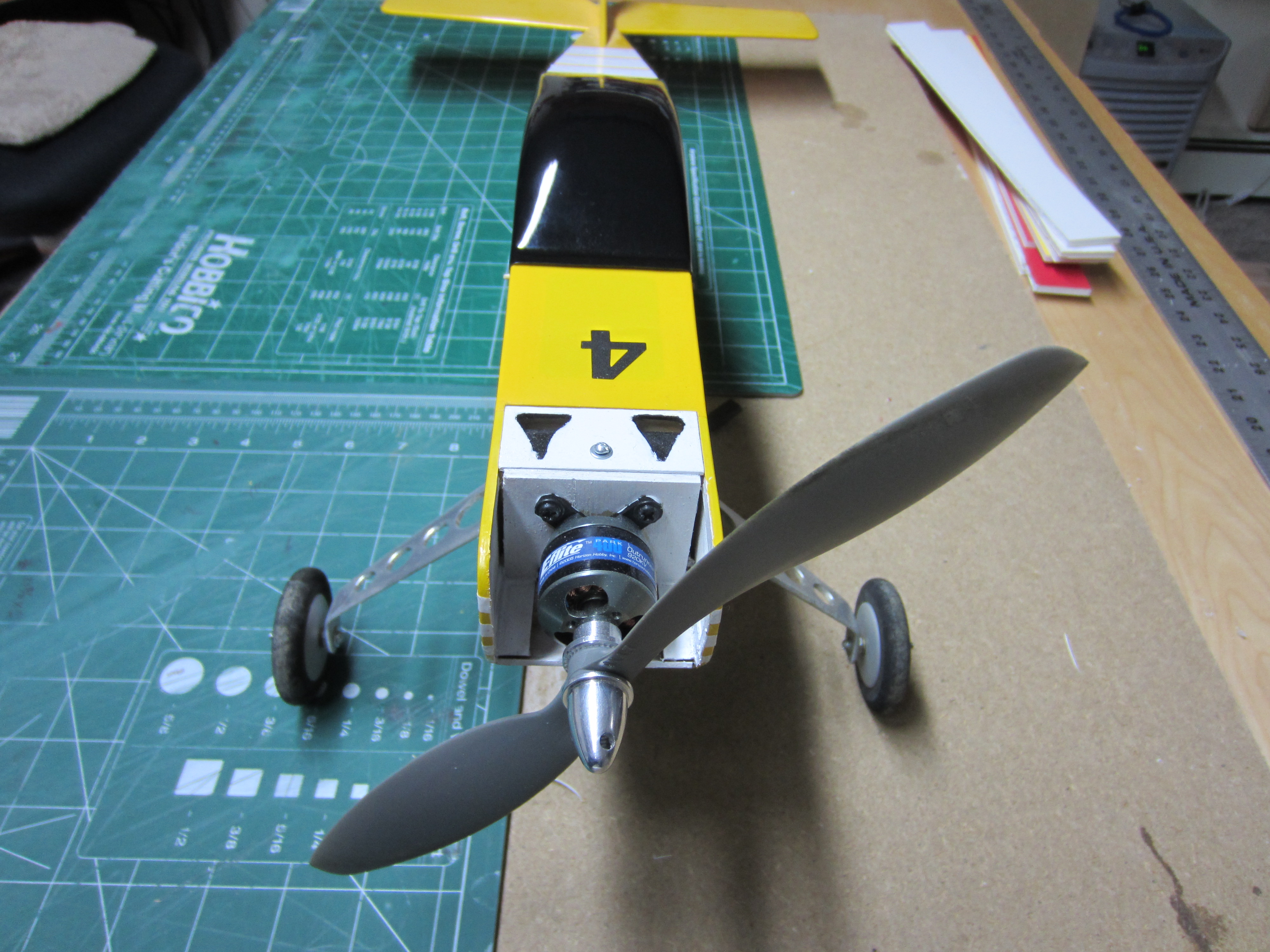 I haven't decided what I might change. I had thought about the gear as the field I fly from is a bit rough in places. I had also thought about changing to an outrunner as you did, but I haven't been doing electric long enough to really know what would be a good power package for it. I had heard the stock package was a bit anemic.