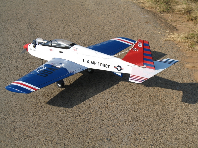 My Kobra is in the above thread done up in the Blue Angels color scheme. It's a real pretty plane but it can get VERY hard to see depending on distance and angle to the sun. I've got myself into a few tense seconds of disorientation. The plane is small and even with just a 25 in it, once you get it in the air it can really move. Those seconds felt like a lifetime.