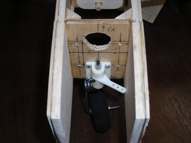 Last night I installed the rudder/nosewheel servo , nosewheel pushrod, throttle servo and pushrod,