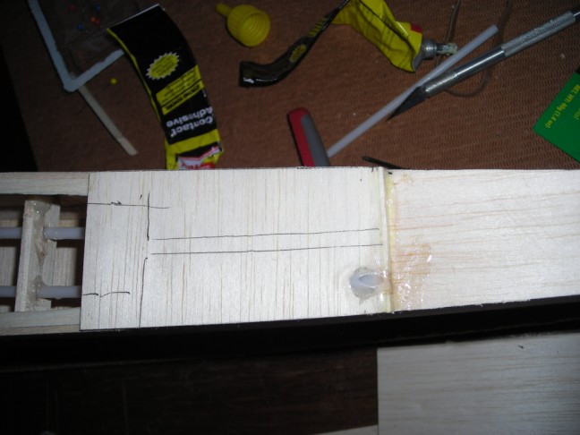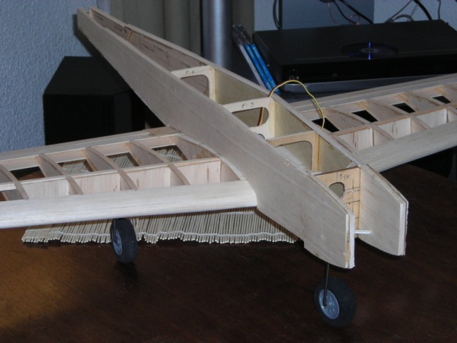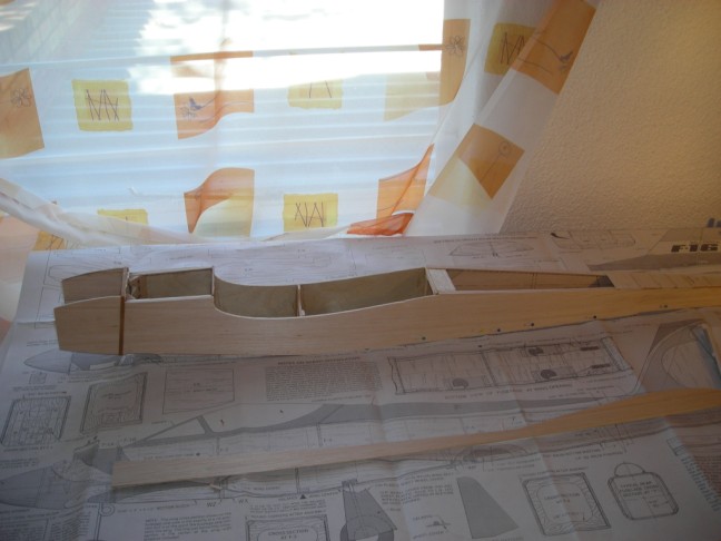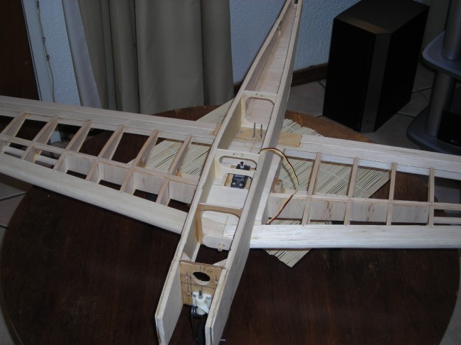 Laser Rods Guides are glued in and the top of the Fuse is sheeted except for where the laser rods were glued in the middle of the fuse.