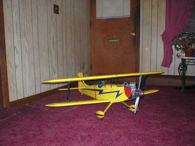 Ive got a Hog Bipe hanging in the basement.......I bought it from someone and have not flown it yet.......I think this one only has one servo on the ailerons? Is this possible? I definitely wanted to do something different before attempting to fly it......I had no plans or anything .......What is the average finished weight of this plane? it seems a bit heavy......