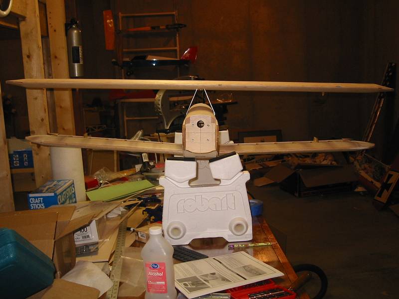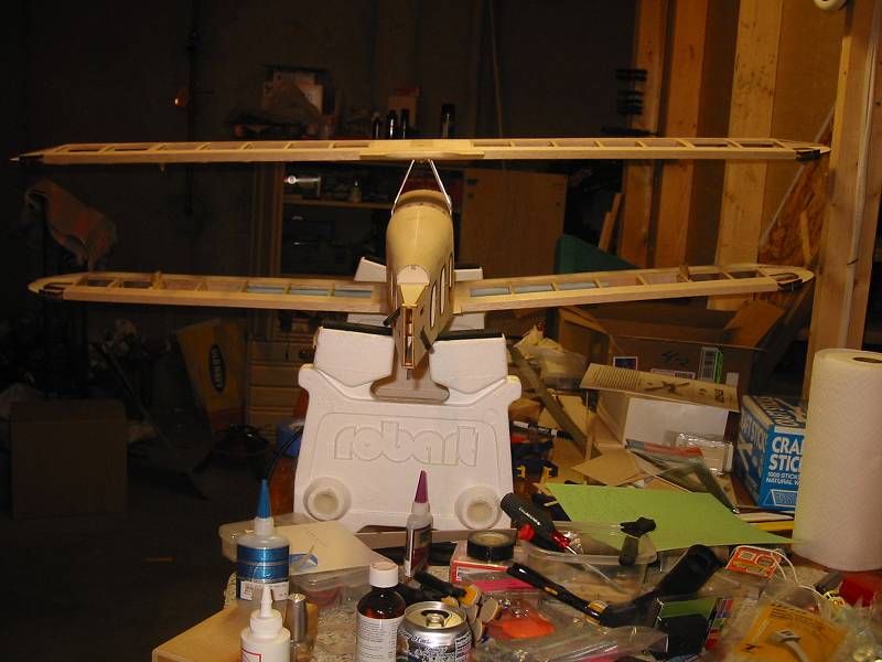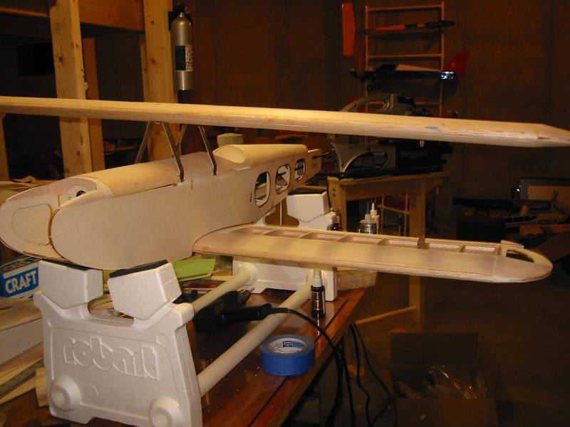 I'll post some additional pics tonite. I added the wooden dowels to the bottom wing along with the bottom wing mounts. I started on the Fin and Rudder and Stab. This puppy is almost ready for sanding and covering!