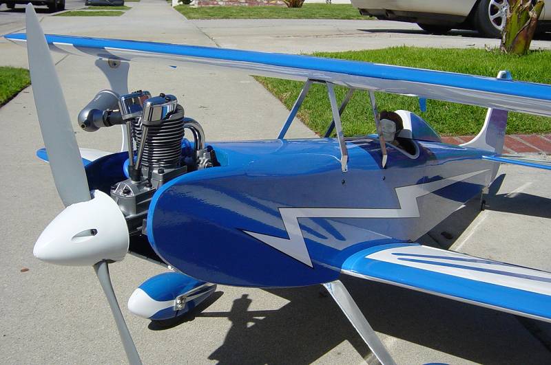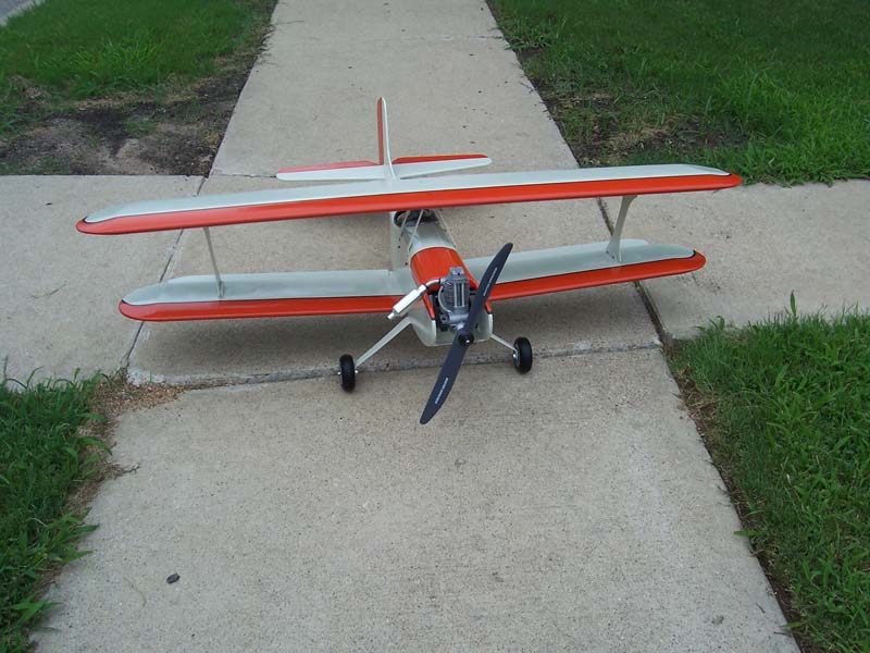 MA here are a couple of pics that were shot right after I got my plane painted, it is still pretty much the same with the addition of a frame around the windshield and the wheels have been painted. Of course all the control rods and hardware are installed too. I built and painted the wheel pants, but I used different axles so the wheel pants did not fit, hence mine runs around without pants.