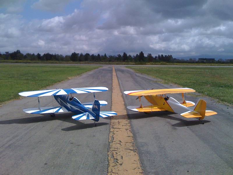 Just noticed the specs on the Hog Bipe saying the flying weight of this plane is 6.5-7.5 lbs. This seems a bit optimistic considering mine weighed in at 8lbs 14oz!! The other Hog in the above picture weighs exactly the same. The plane flies great at this weight and has unlimited vertical with the saito 100. Not to mention that it floats in for landings pretty well too! So, I'm not concerned, but it's annoying when manufacturers stretch the truth so much.