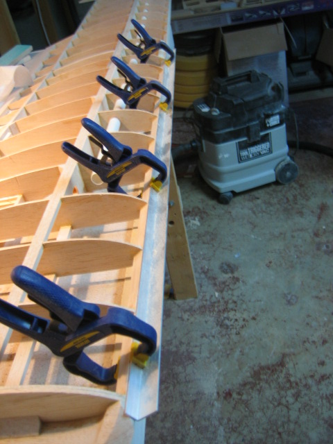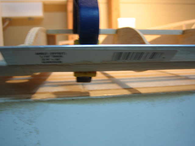 I was working on the wing to my Kadet Senior needing to true up the leading edge. I have some aluminum "L" stock sitting around - about 44" long. It was straight and had an easily clamped edge. See pics. After clamping it was a simple matter of running a sanding block down the front edge - badda boom badda bing - a very nice straight leading edge.