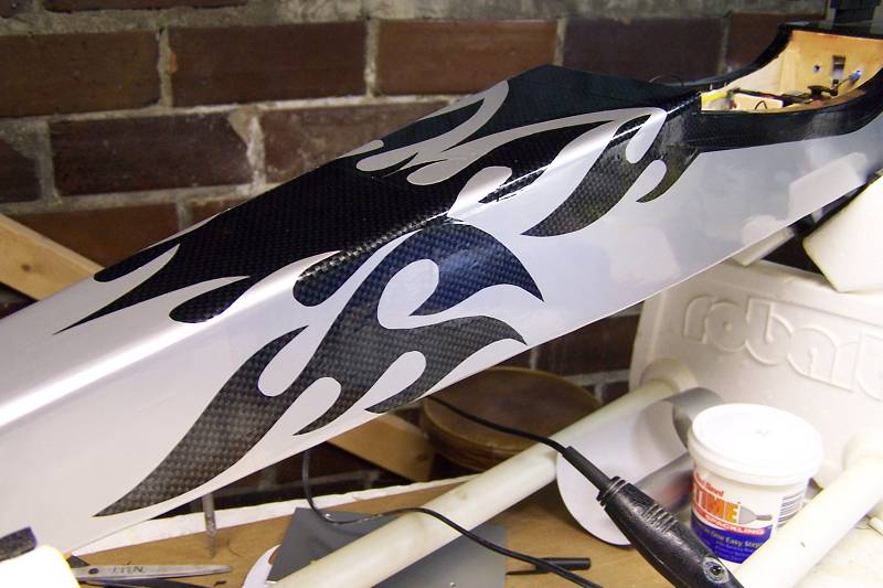 If you like covering jobs have a gander at my Mustang this one is all Ultracote Crome with blue, black and white. I just love covering its the best part of the build to me it's what makes the plane. I thought my scratch built Ugly stick needed some tribal work on the fuse it looked a bit plain how does it look now?
