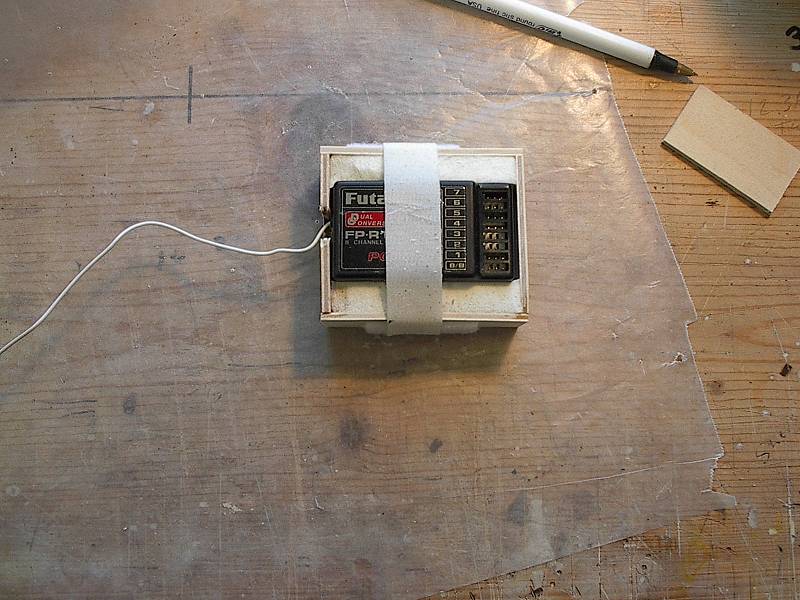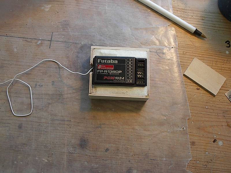 I also attempt to get the receiver aft of all the rest of the heavy items in the airplane. This does a few things. 1). It helps protect the receiver from damage by having all the other stuff hit first, instead of pounding on the receiver. 2). It get the antenna away from the servos and other wiring which might reduce radio range or cause glitching. 3). It arranges the heavier items forward where the weight is generally needed and the lightest component (the receiver) aft where it's weight is easy to compensate for. I may not always be able to get it to be the farthest aft and sometimes will only be able to get it under the servos, where at least it will run neck and neck smashing into other stuff.