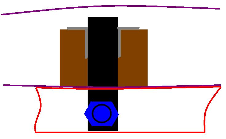 I'd need a bolt with no head on it, but a hole though the shaft. The bolt will run up and into the block of wood thats buried inside the wing. The cabanes would be bolted to that bolt with another bolt and nylon lock nut.