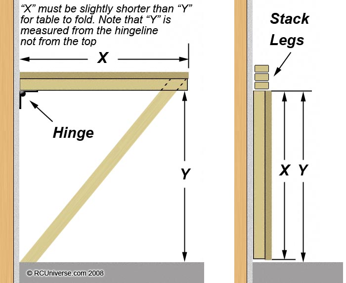 Actually, what gets the most use is my purpose built building table. It is eight feet long and just over two feet deep. It's on wheels so I can wheel it anywhere I want like against the wall when not in use. When building, (see my builds on the Sopwith Pup, DR1, and Giant Aeromaster) it is pulled out from the wall so I get 360° access all around the plane. I build 60-size and 1/4 scale stuff so it is nice to be able to have the plane on the table and the wings not hitting the walls. If you can't afford that much room in garage for a free standing table, Minnflier's suggestion of hinging it against the wall is a good one.
