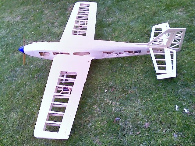 Nice job. Balanced elvators. Nice work on the engine cowl. I like see the airframe too. I would use some tranparent covering material if my workmanship wasn't so poor.