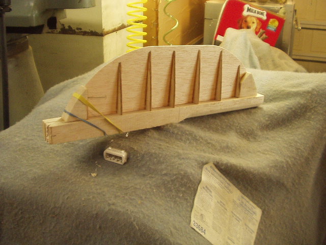 I also forgot to tell you that during construction I would place the former onto the keel, weight it down, clamp it straight and then dab some glue at the 90 degree intersection. I wouldn't put any glue down first then put the former on the glue, just dry, make sure everything was straight then add glue.