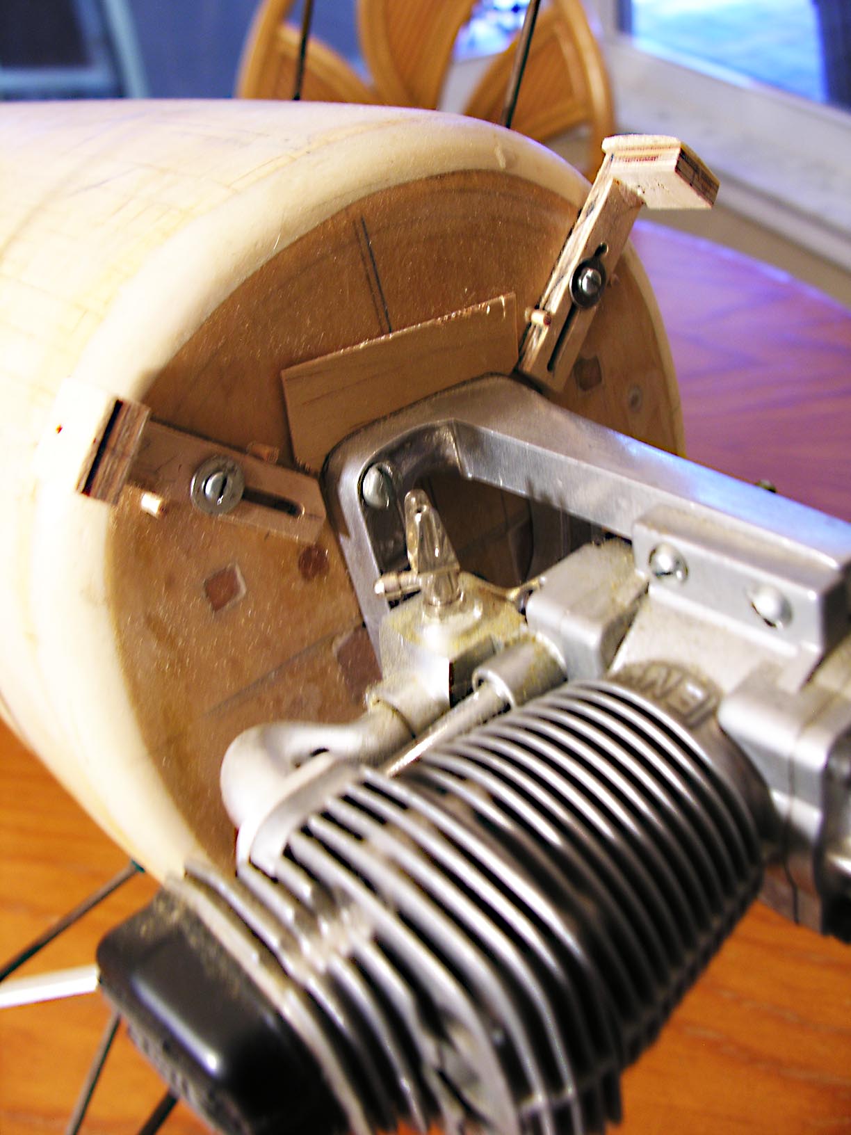 Another thing I just noticed. An aluminum motor mount. The last time I did that, the first crash I had (and yes, if you fly you will crash, it is just a matter of time) the motor mount was stronger than the engine, and the crash tore the mounting bosses off of the engine, along with part of the engine case. Needless to say, no more aluminum motor mounts for me.