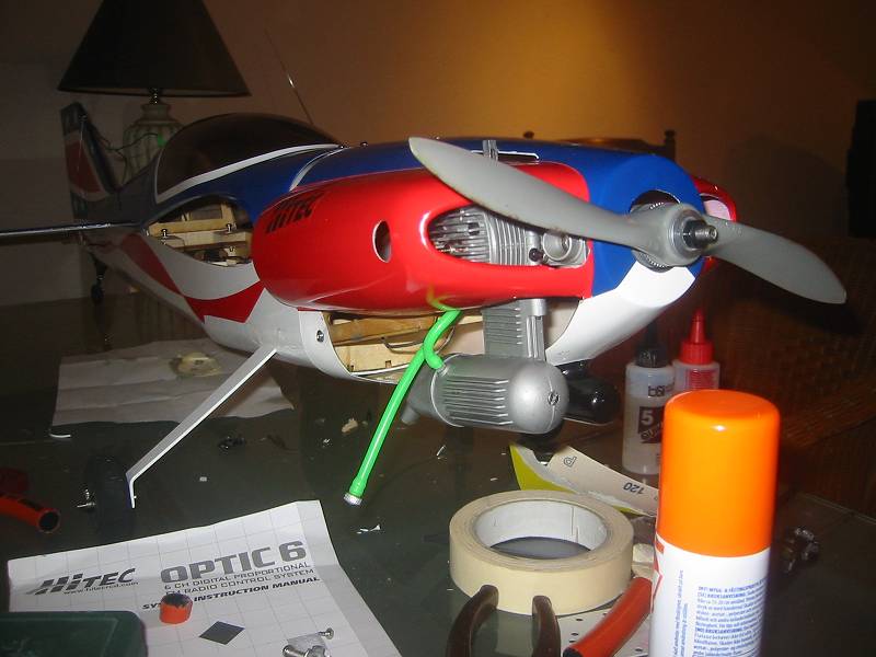 Here"s a couple of pics: I used to fly it with a tuned pipe so the cowl cutout is slightly awfull with a standard silencer:P
