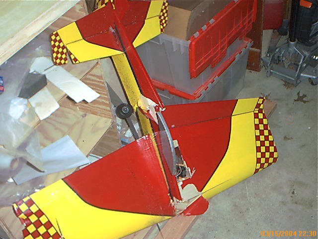 Fixed a buddies plane that had a cracked fuse... I just squirted some ProBond in there, clamped on a 2x4 and flew it the next day... Flew really great.... I was lovin it... Gettin real cocky and stuff..... I was doing some snap rolls and did some kind of inverted snap that didn't work out to good.... Got away from me fast......