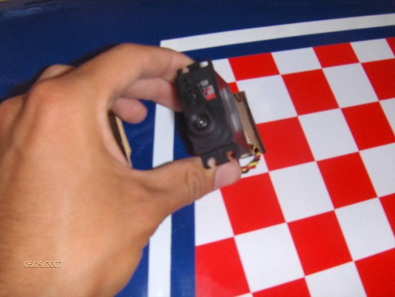 Second I installed the servos in the wing. To me just using the screws provided with the servo works perfect installing them to this airplane. Just located a screwdriver or drill and screw the servos in. For small profiles I usually dont worry about putting some CA down the holes. It is up to you if you want to do this.