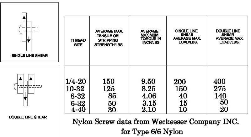 Yes, nylon is preferred and more than strong enough. In most cases an 8X32 nylon will suffice. I get by fine with 10X32 in my big 1/4 scale and larger with never a failure in some 25 years.
