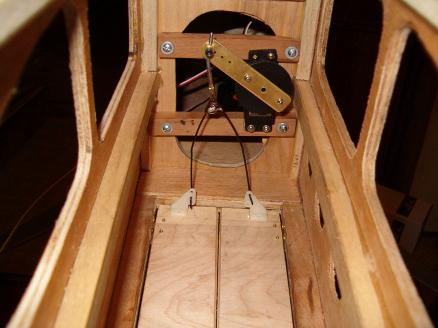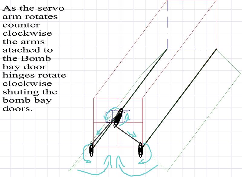 Go to my Bruce Tharpe Flyin' King build, http://www.rcuniverse.com/forum/m_75...tm.htm#7634858. Post #6 shows pictures of how I build a bomb bay for the King. It is similar to Bruce's design shown above with a couple of changes. It has worked well and is connected to the gear channel.