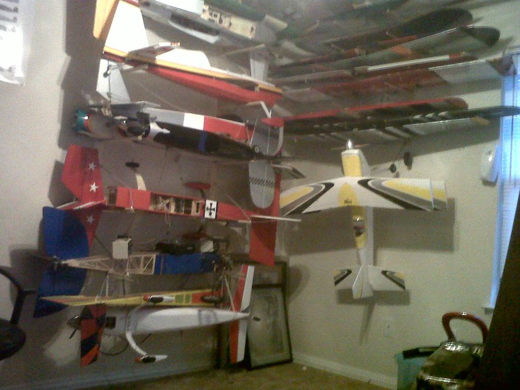 I personally have just a few planes, so storing these planes can be a challange at times, I have a airplane?computer room that I store most of my planes, and alot of the bigger ones hang from the celing of my hobby room. Ive got allmost enough room for one more wing rack and one more fuse rack in my airplane room, just got to sneek them in one at a time, just so my wife dont notice!