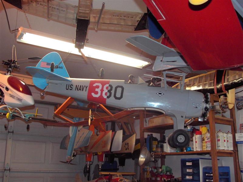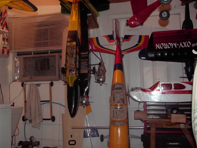 In my dungeon (shop) the airplanes handown in multiple levels to my head height sitting in my chair. (one of the photos showing a flying bud illustrates this). In the shop am I an airplane hoarder? Oh yes but unlike those hoarders on tv in my home I keep things very simple and sparten