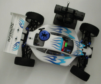 the car is a kyosho inferno 7.5 sport and yes the distance is fine cause the lhs meshed it for me this is a orginal picture of my car last year with none of the hop-ups on it and i have a picture of my engine from my lhs it is off my lhs web site.