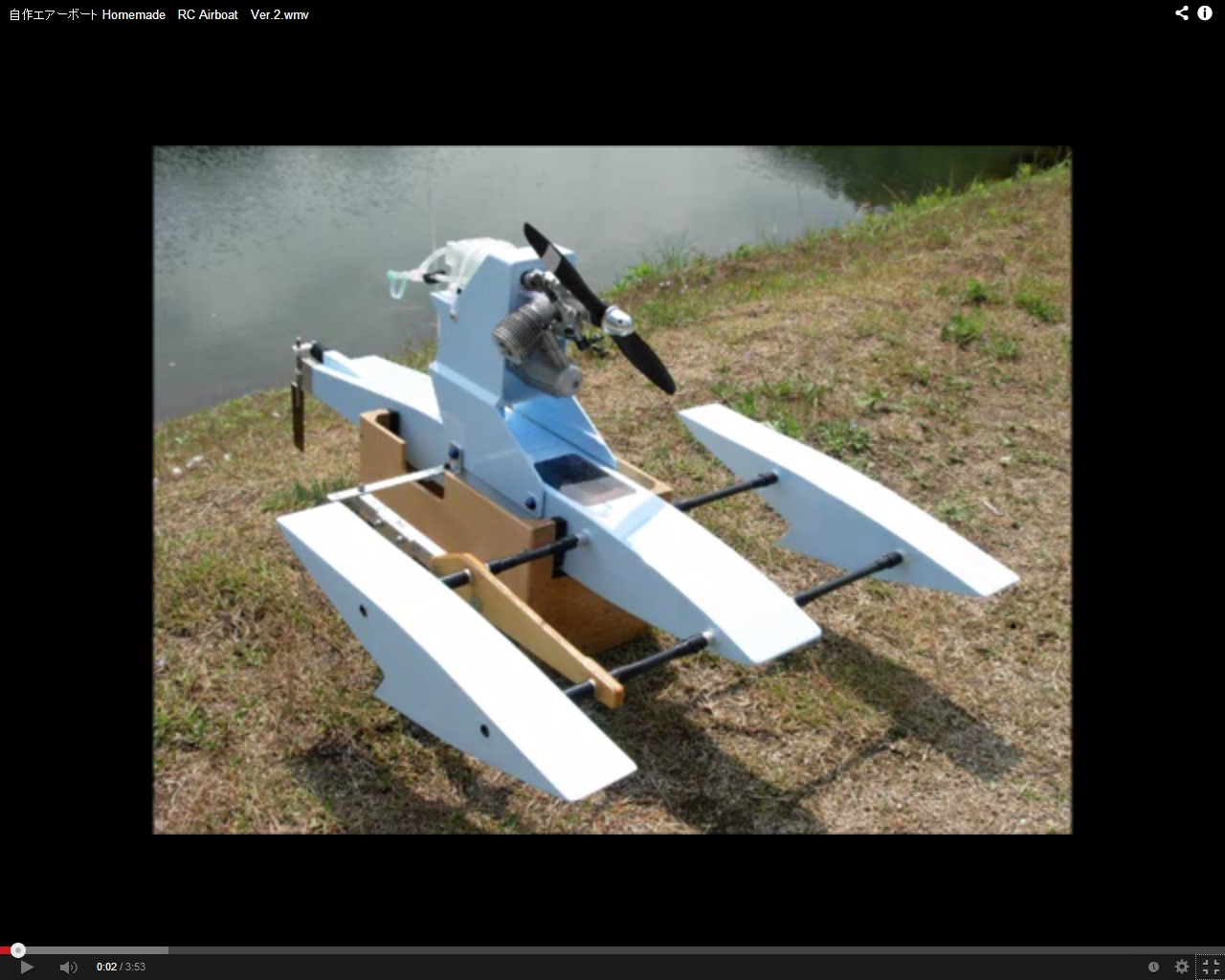Hi Jeremy_H Clearly I'm not alone in my thoughts on this idea. Is that your boat in the pic? I never considered a rigger with an air engine. Please understand I meant no disrespect to anyone's design or a person for what interests them in this varied hobby of rc merely exploring alternatives with available means of propulsion. I have seen some interesting creations here at rcu and it can certainly gets ones creative juices flowing that's for sure. I have built a 48" hydro and placed a 75 supertiger (inverted for lower CG) just behind the front sponsons at about 2 degree's up thrust and to be honest it scared the heck out of me, scary fast, too fast for fun unless the aim is to create the fastest water dragster. It was estimated to be over 70 mph in seconds and to my astonishment it actually worked with no sign of lift off, blow over and seemed to be exceptionally stable. Have you or anyone else experimented with this concept?, what was the outcome?, anyone have pic's of their creations?