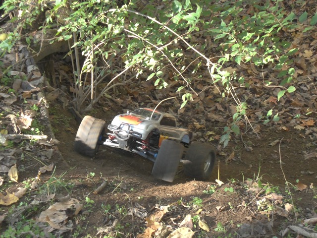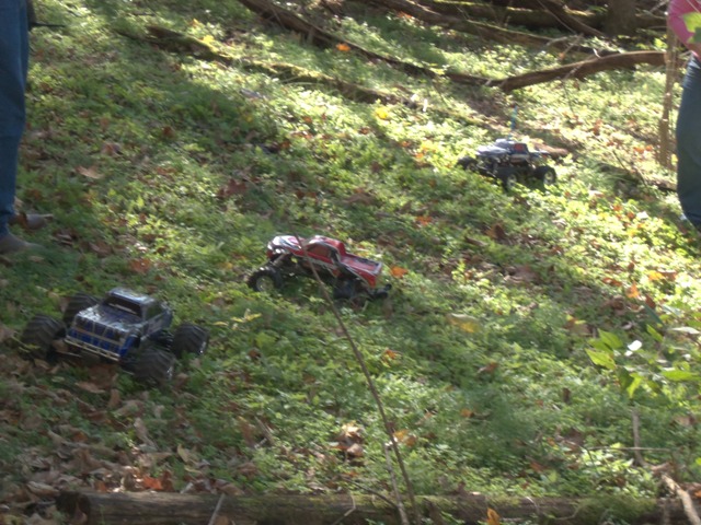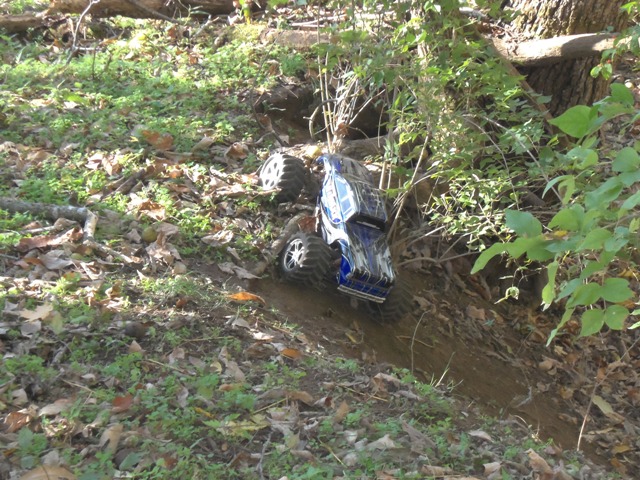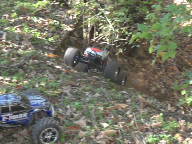 Went bashing Saturday with my wife and in law's. We went to my parents place where there is a wooded area. Its beautiful down there this time of year and I the grass is short enough that its pretty nice to run there. I went down to a washout that was pretty dry and had a nice steep dirt hill coming out of both sides of it. I was running my stock 3906 e-maxx (nothing but an upgraded driveline) on lipo's and having a blast trying to climb up out of that gully on both sides. My father in law was running his 3905 e-maxx too. It was a perfect place to run and I had a good time. I ran there about 15 minutes, and the rest of the time i was playing around crawling over logs, climbing some other hills and just running on whatever i could find. Ran for about 40 minutes on a single set of 4000mah lipo's since i wasnt on the throttle hard a whole lot. My whole point to this is that almost any r/c can be a lot of fun in the right area. If i just take this e-maxx outside and run up and down the street, its pretty boring. If i go down to the woods, i can run it all day and not get bored. The same with something like a brushed stadum truck that does 25mph or so. Its boring in the grass, but put it on a technical track with some jumps and its three times as fun.