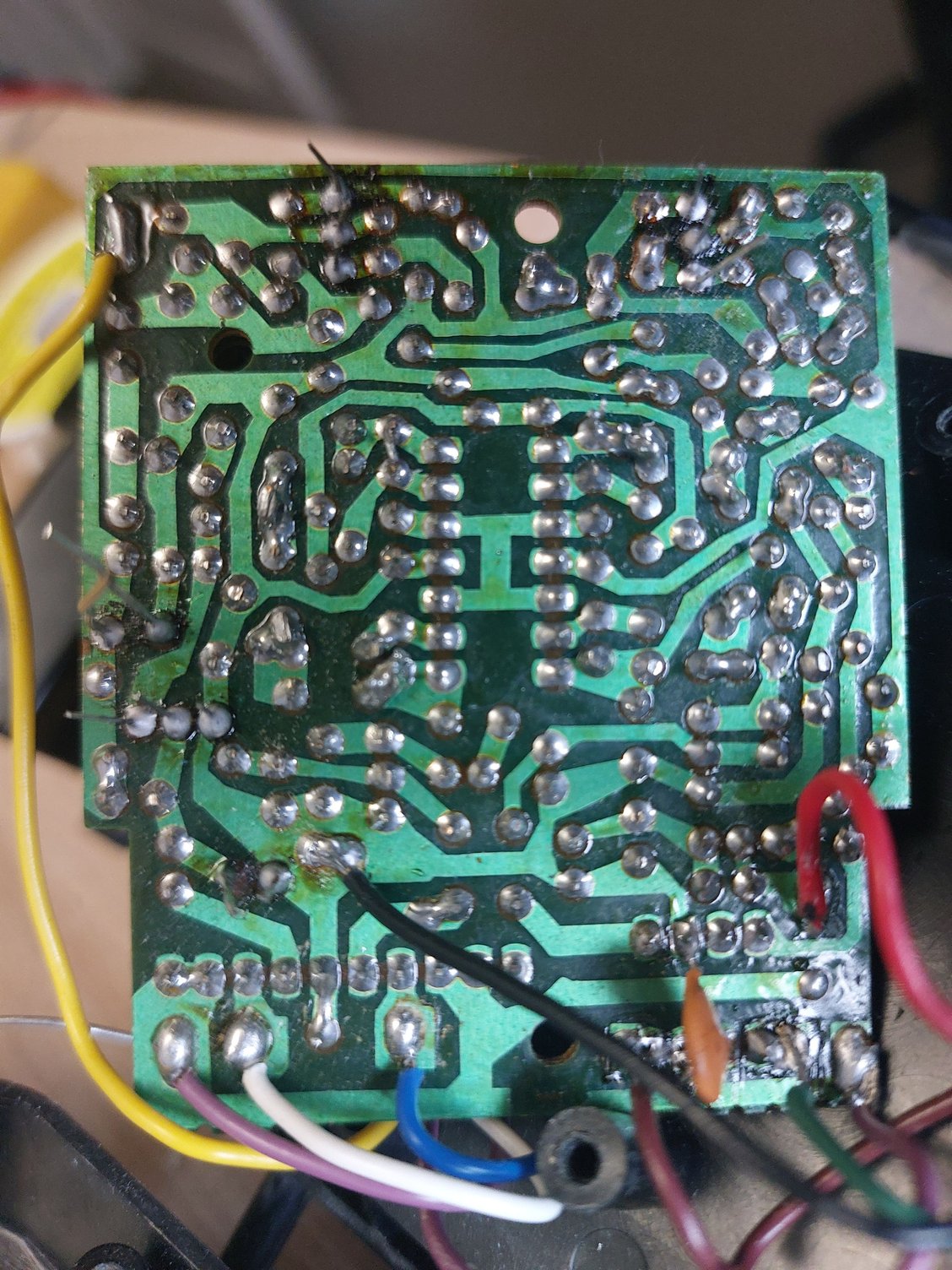 - Replaced the large capacitors (not sure of their original values, but they were visibly bulging).