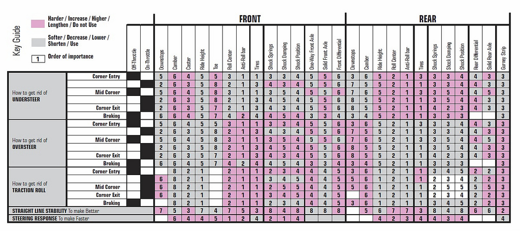 Traction roll is typically mitigated with ride height, which was listed as the #1 priority adjustment in the chart I linked earlier. These guys should start with a good baseline setup before blindly making any other tuning changes, they could have their cars so far out of whack they could easily create bigger problems elsewhere. It's better to start in the center of the tuning window rather than in a far corner which will drastically limit your options :( |