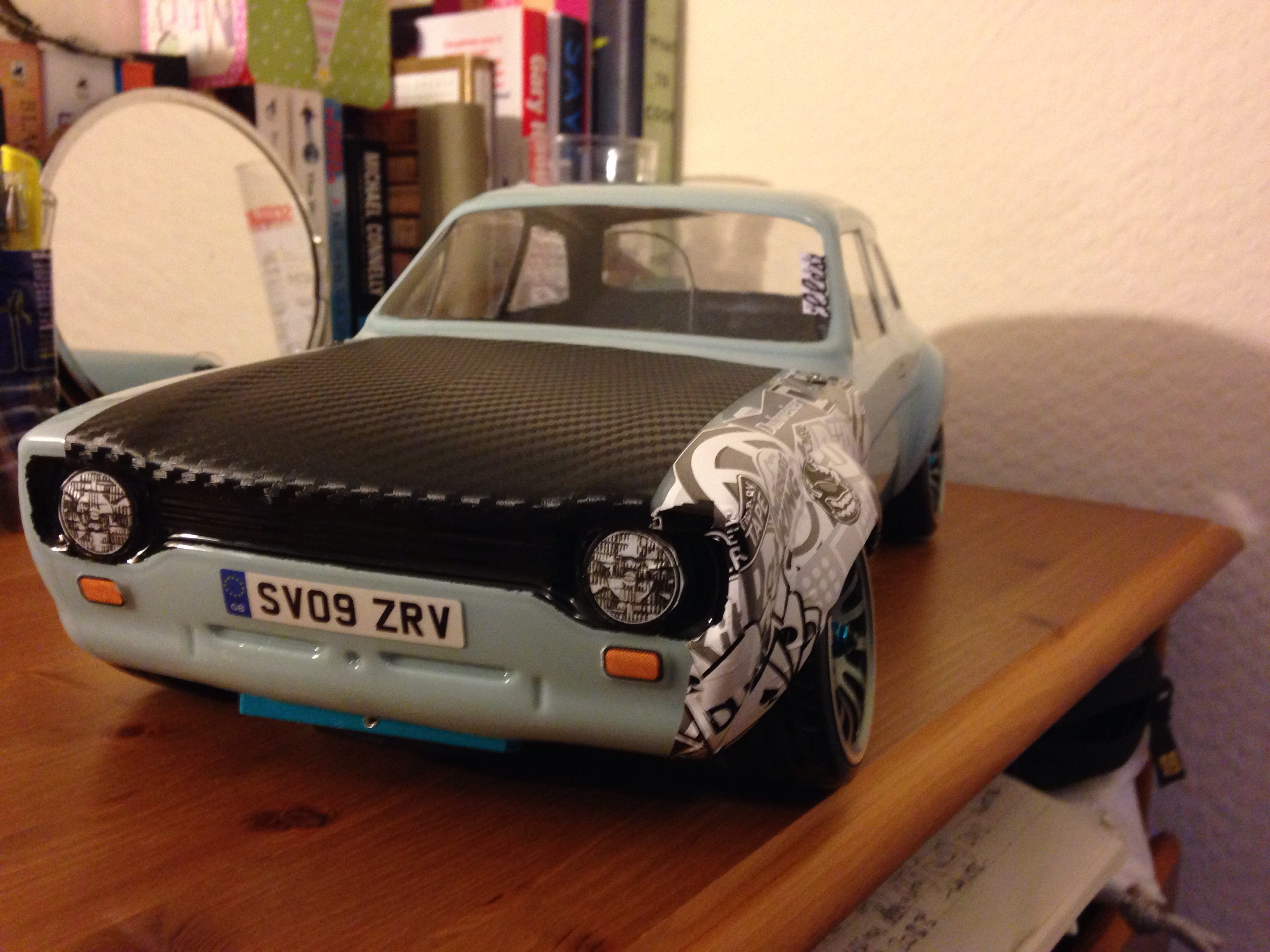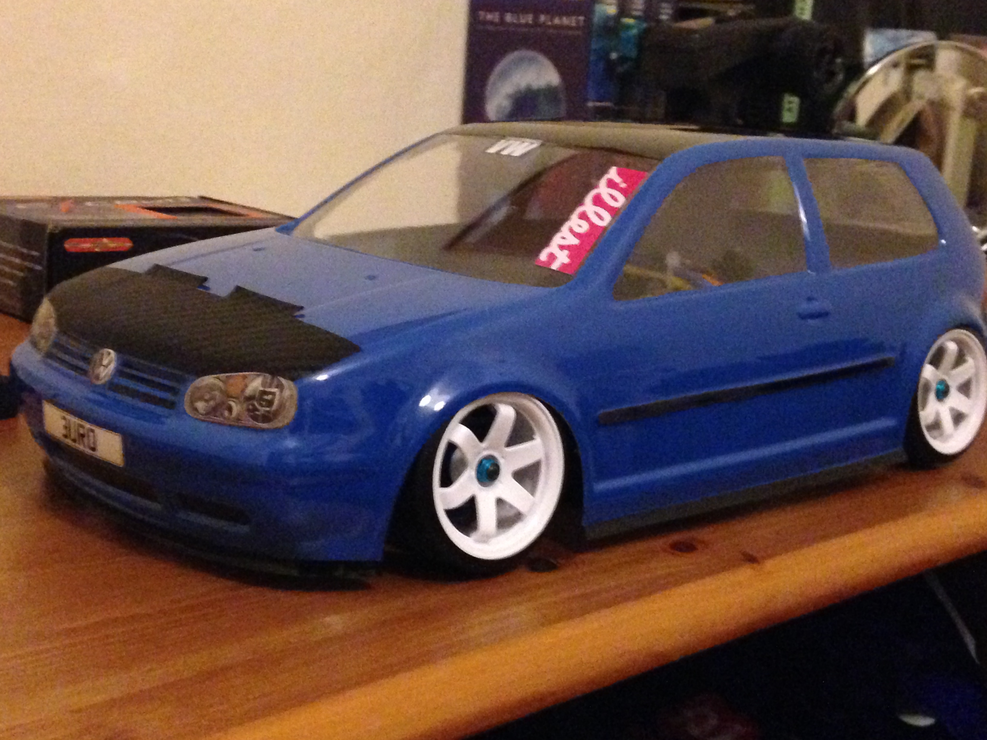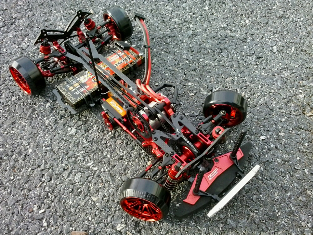 8 and 9) ABC Hobby Genetic "Naked USR" (apparently now discontinued) modded for drift with front one-way, rear spool, and some electronics re-arranged Using two smaller air LiPos wired in parallel) to balance the chassis and lighten it.